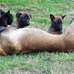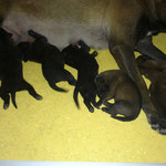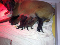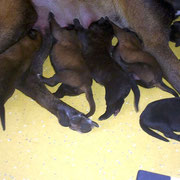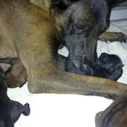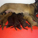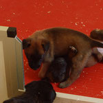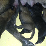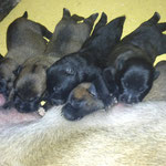 Amy hat heute 6 gesunde Welpen(4 Rüden+2 Hündinnen) zur Welt gebracht.2/1 Welpen gestromt und 2/1 Welpen malifarben.