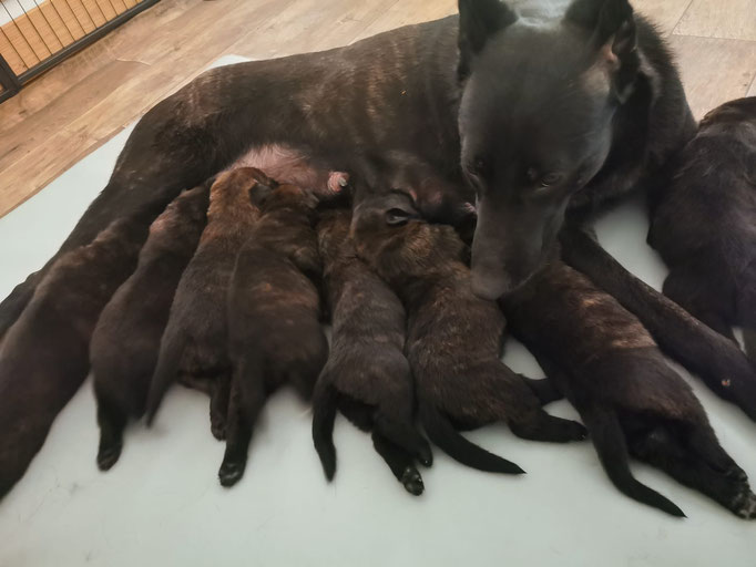Hera ist wie Ihre Mutter Wolf eine sehr belastbare Hündin mit einem extrem hohen Spiel,Beute und Futtertrieb ohne dabei hysterisch oder nervös zu werden.